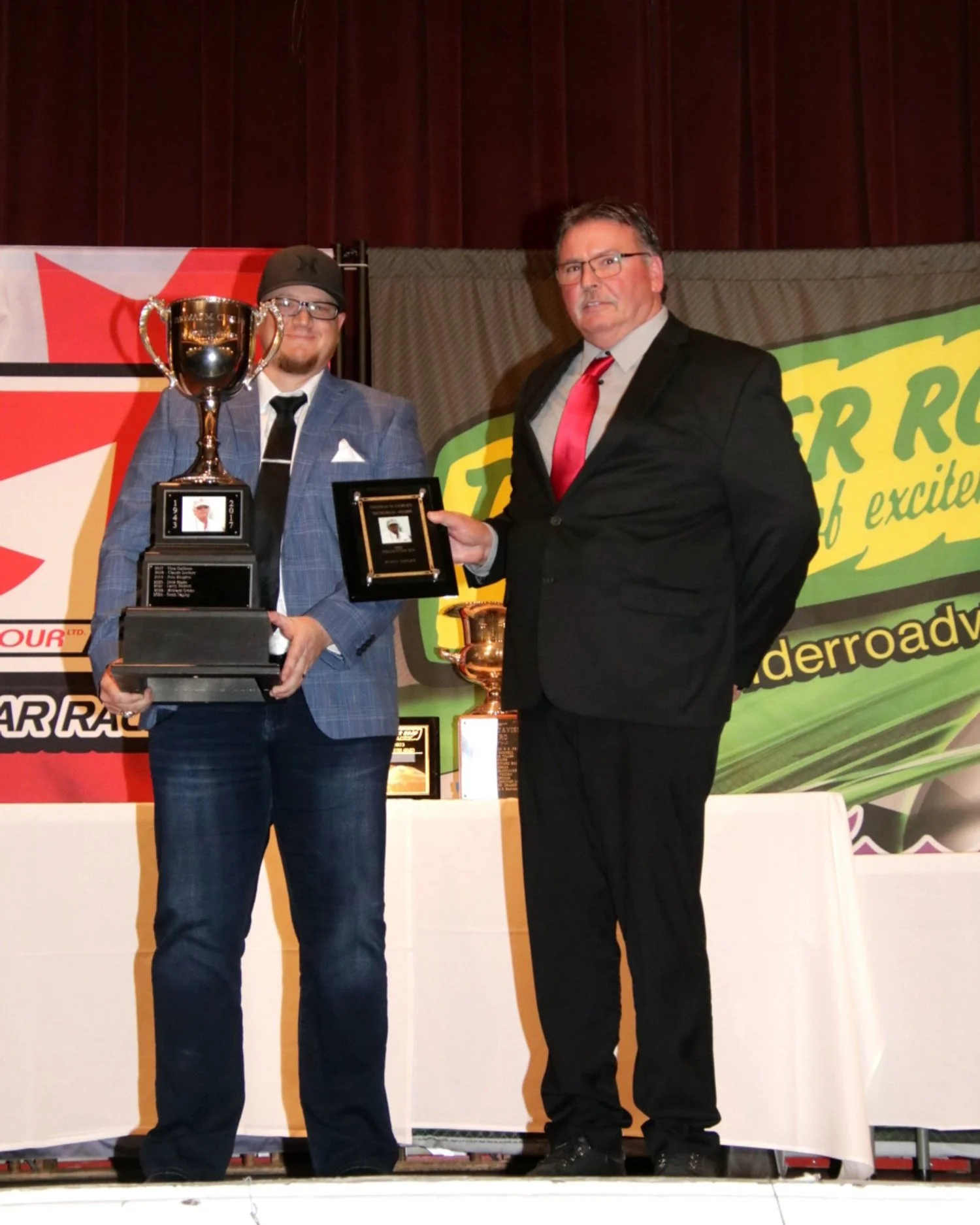 D.J. Shaw and car owner Arny Hill collected their hardware, the $10,000 championship bonus, the $2,000 Brookside Equipment Triple Crown championship bonus and a series of contingency prizes that included three drums of Sunoco 110 Race Fuel and certificates from Kirkey Racing Fabrication, KRC Power Steering, Bassett Racing Wheels and Allstar Performance. Shaw thanked his many supporters from crew chief Andrew Cimonetti and car owner Hill to his sponsors A.H. Fence Company and Bar Harbor Bank & Trust and his family for all their combined efforts in bringing home his second-consecutive American-Canadian Tour championship.