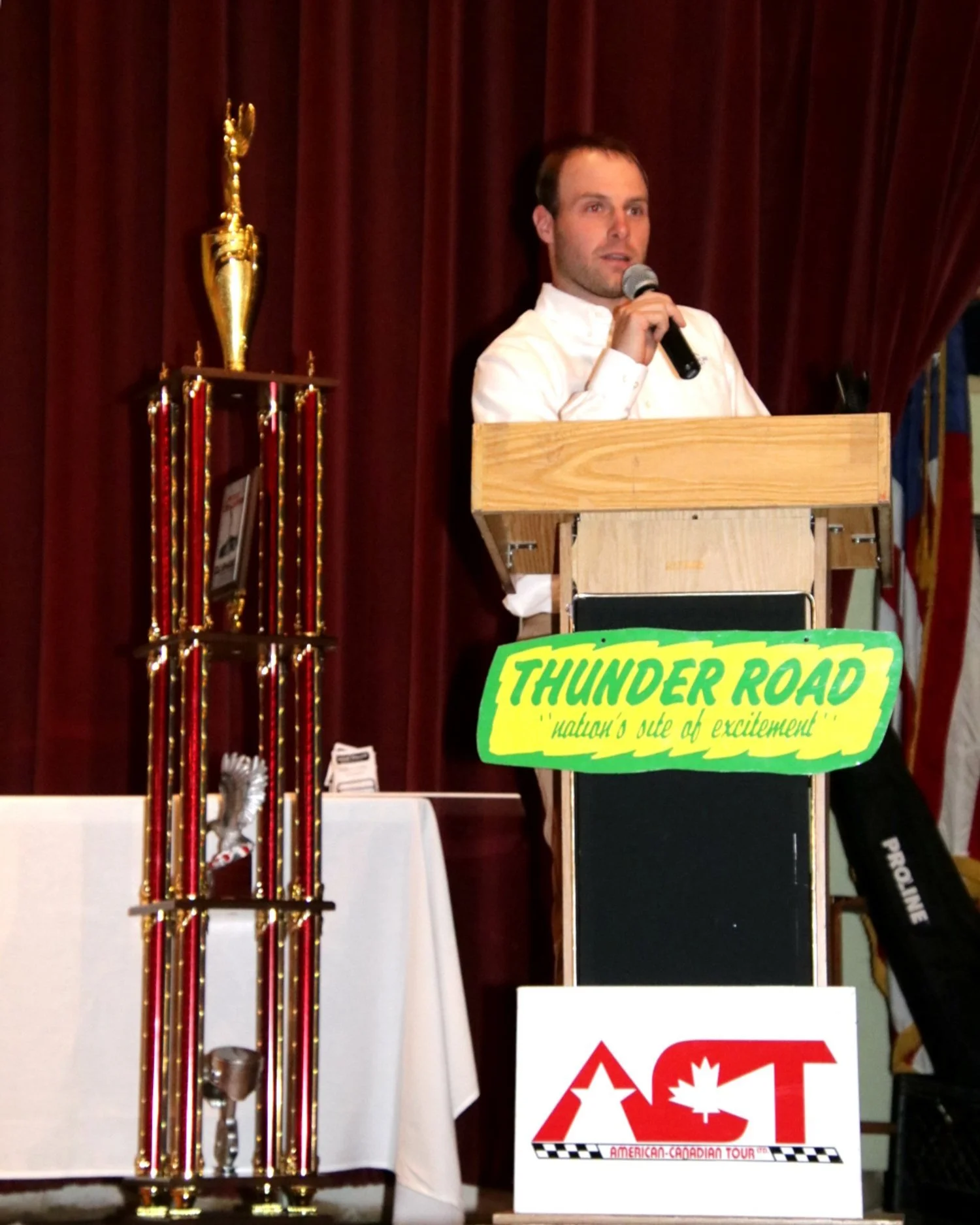 /Barre, VT — Over 300 people were on hand Saturday evening to celebrate the 2023 American-Canadian Tour season and that of home-track Thunder Road International Speedbowl in Barre, Vermont. The packed-house gathered to wrap up the 2023 season in style. Just before award presentations began, a series of prizes were raffled off to the top supporting competitors on the American-Canadian Tour courtesy of a series of contingency partners.