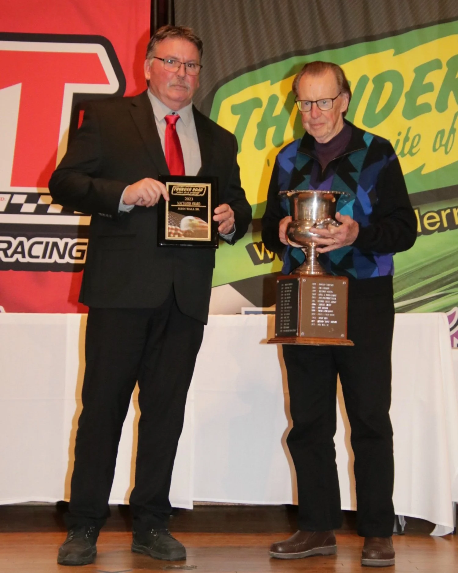 Leader of ACT Race Day Operations, race director, graphic designer and lifelong member of the racing community, Scott Tapley was chosen as the 2023 recipient of the Tom Curley Award in memory of the founder of the American-Canadian Tour. The prestigious Don MacTavish Award was given to a similarly lifelong driver, car owner and sponsor John Wall Sr. for his dedication to Northeast stock car racing.
