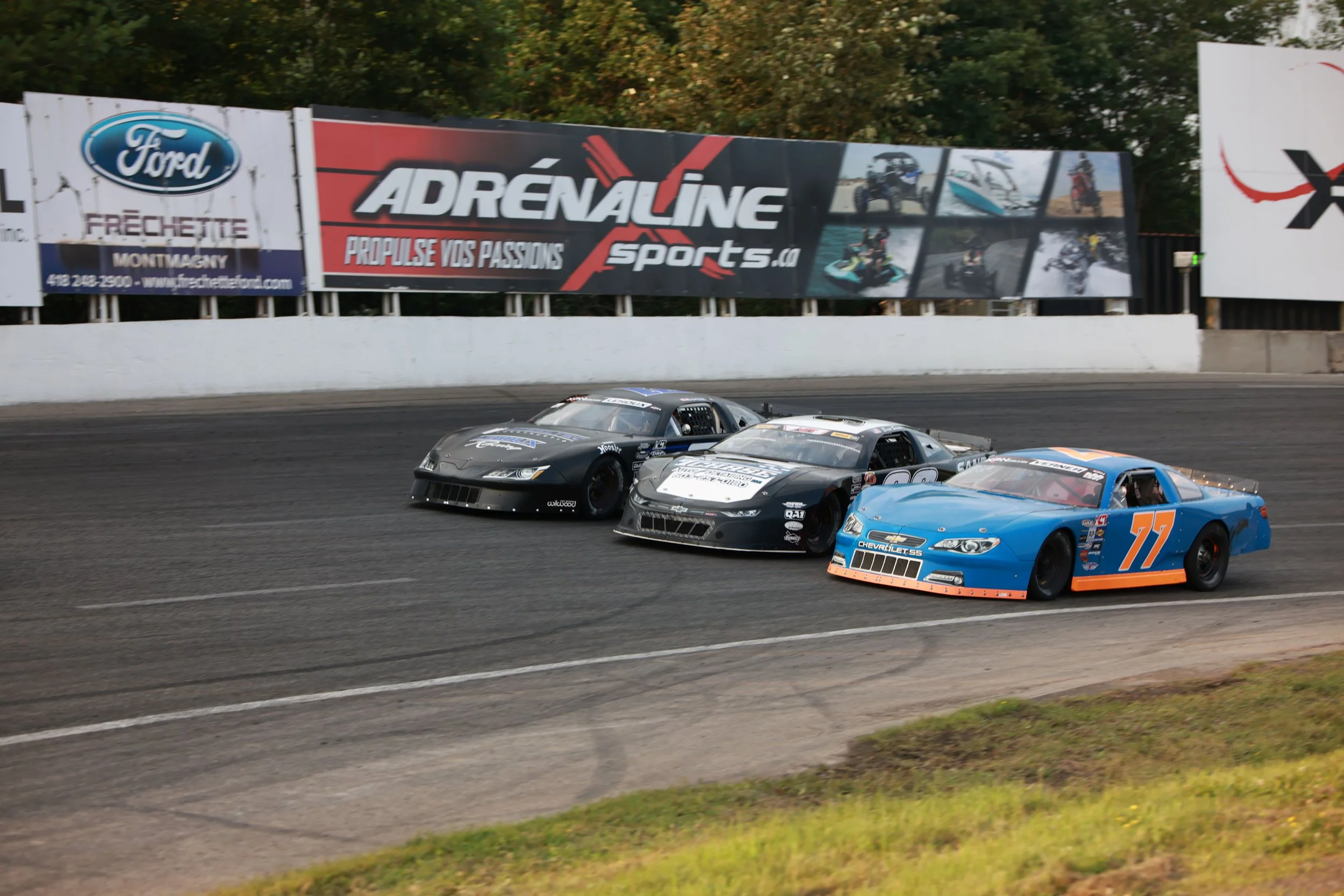 Officials enlisted the help of several photographers but none had a clear picture across the start/finish line. It wasn’t until Autodrome Montmagny social media personnel shared video from their drone above the frontstretch that the picture came into clear view. Jeff Cote’s black #51QC was first to hit the line under the twin checkered flags, just ahead of Lessard’s white #48QC.